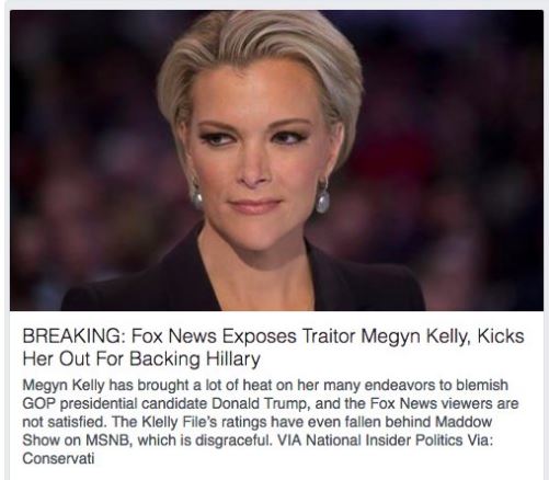 Over the weekend, the algorithm pushed out a story on Fox News commentator Megyn Kelly, stating that she had been fired for supporting Hillary Clinton. Titled “BREAKING: Fox News exposes traitor Megyn Kelly, kicks her out for backing Hillary,” the article was in fact completely false and had been published by an unreputable source.